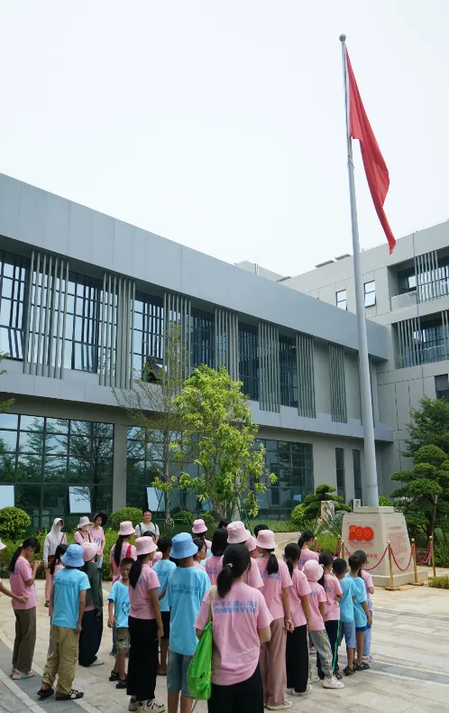 紧接着,孩子们来到了建党百年庆典红旗——070号红旗前。讲解员讲述了z6mg·人生就是博药业集团与庆典红旗的深厚渊源。孩子们听得津津有味,眼中闪烁着对党和国家的热爱与敬仰。